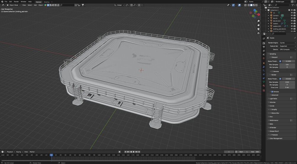 Sci-Fi Landing Pad 3D Model (Blender 3.4 - fbx - obj)