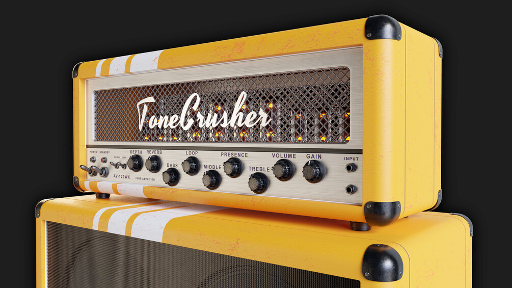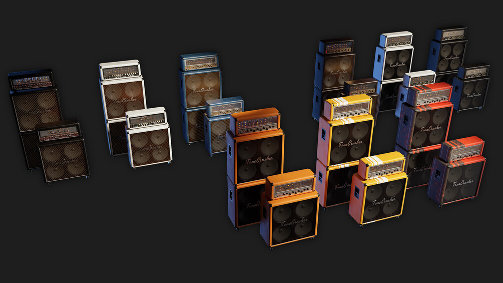 - 18 Variations of Stack Guitar Amplifiers (US and UK style, 120w and 60w) - The ToneCrusher brand is made up and does not exist in the real world, to avoid copyright issues